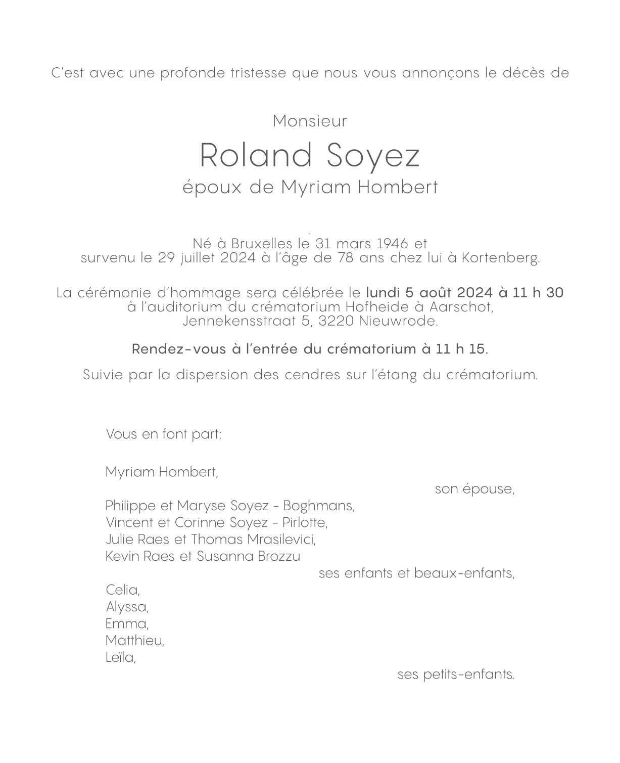 Décédé à Kortenberg (3070) le lundi 29 juillet 2024 à l'âge de 78 ans