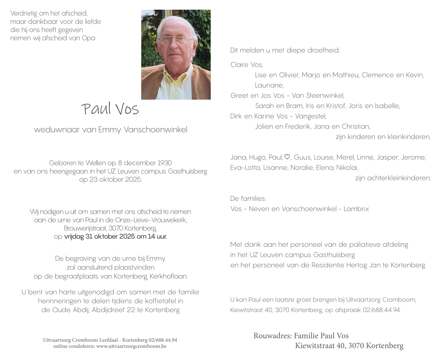 Décédé à Leuven (3000) le jeudi 23 octobre 2025 à l'âge de 94 ans