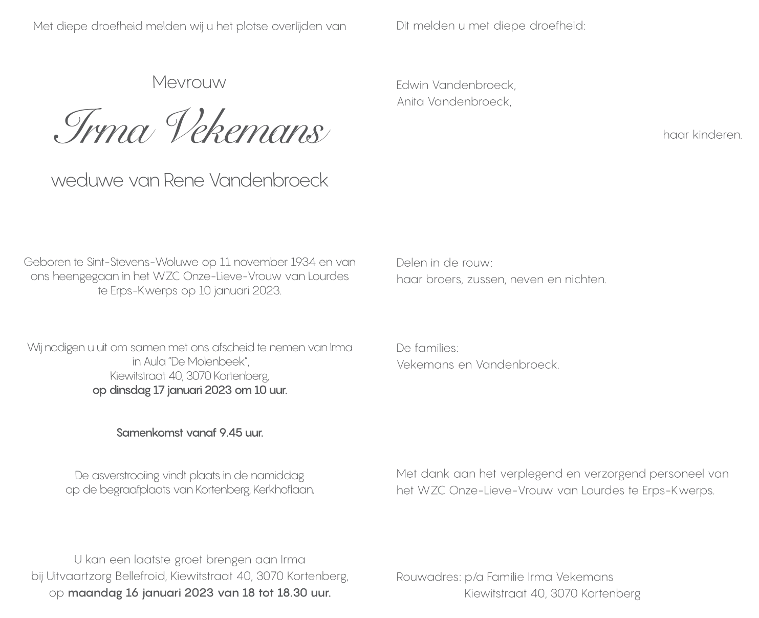 Décédée à Erps-Kwerps (3071) le mardi 10 janvier 2023 à l'âge de 88 ans